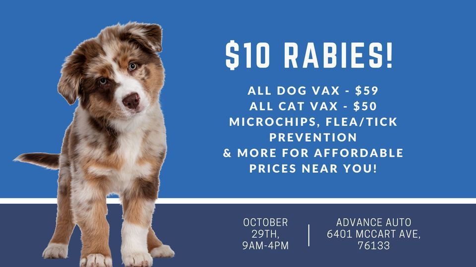 Web Fort Worth Low Cost Pet Vax McCart Ave happening at Advance Auto Parts 6401 McCart Ave Fort Worth TX United States on Sat Oct 29 2022 at 0900 am to 0400.